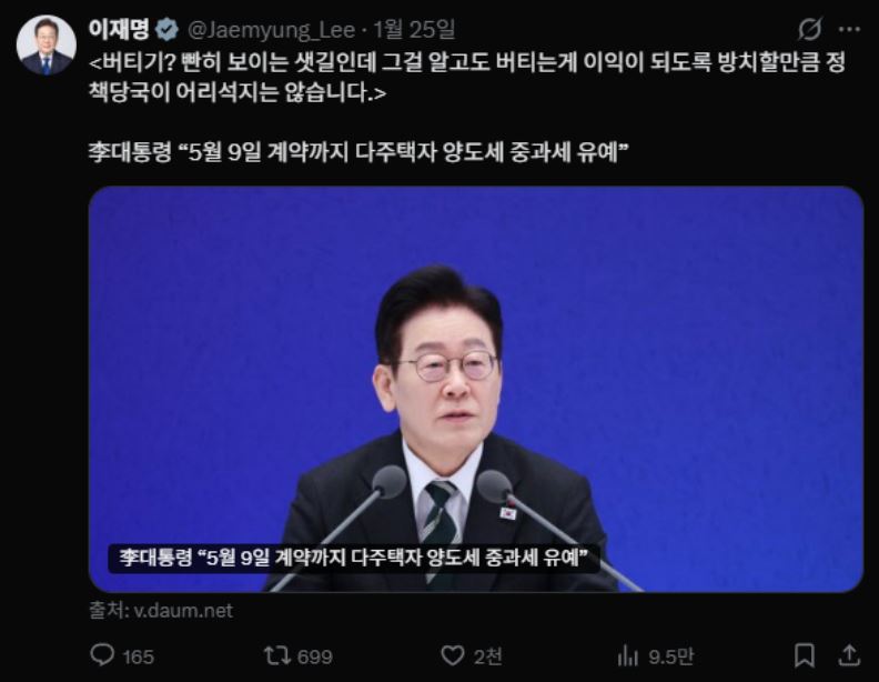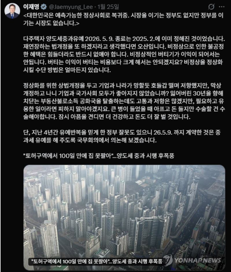 1. 이재명 대통령의 X(구 트위터) 부동산 글은 완성되어 가는 주거·임대 시스템에 대한
