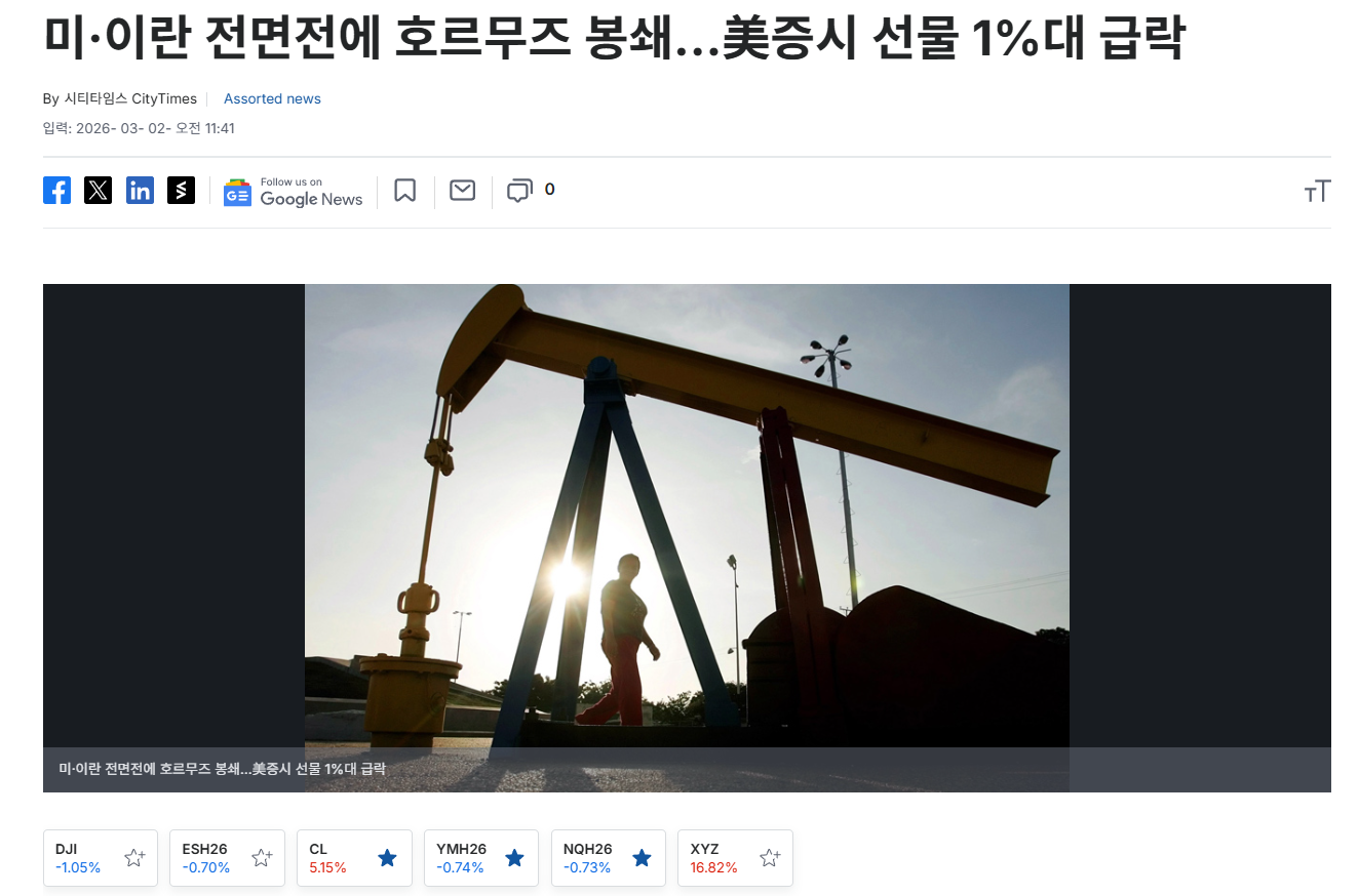 특히 이란이 호르무즈를 봉쇄하는 순간, 시장은 “전쟁 뉴스”가 아니라 에너지 쇼크로 반응한다.