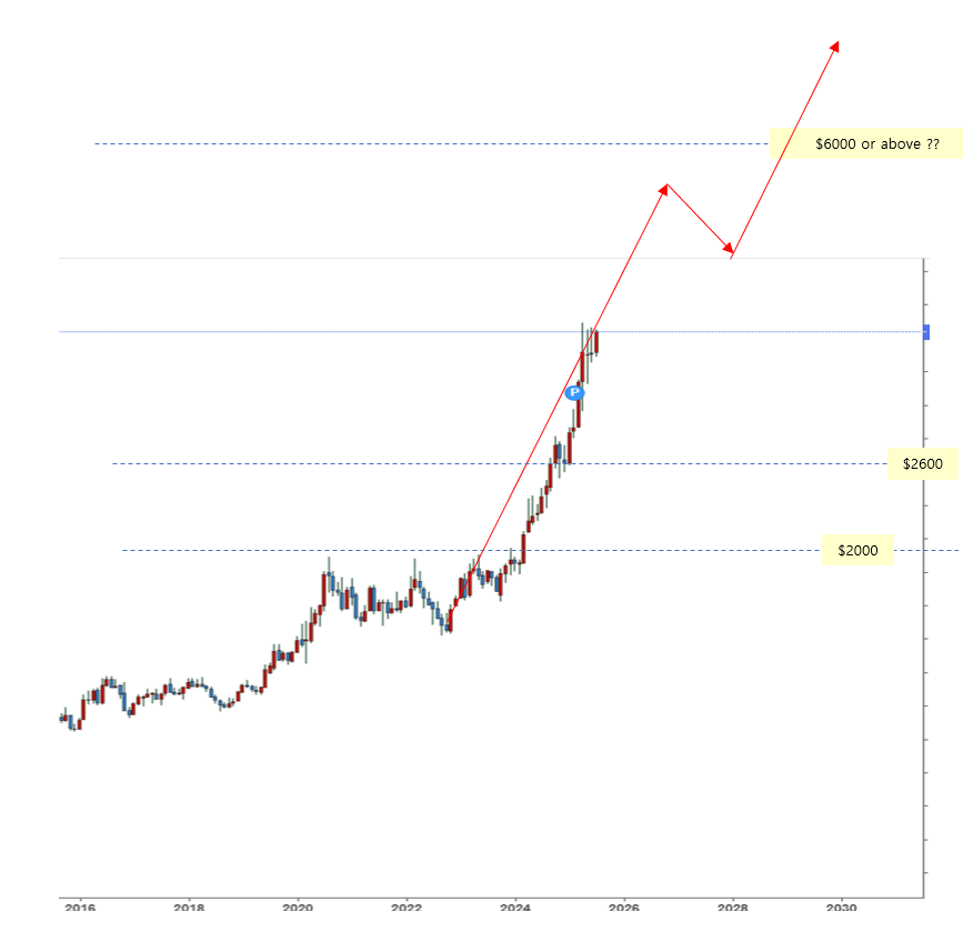 금 선물이 단기간에 $7,000까지 간다는 분석도 나오고, 궁극적으로 2만불, 3만불 간다는 장미빛 전망이 쏟아진다.