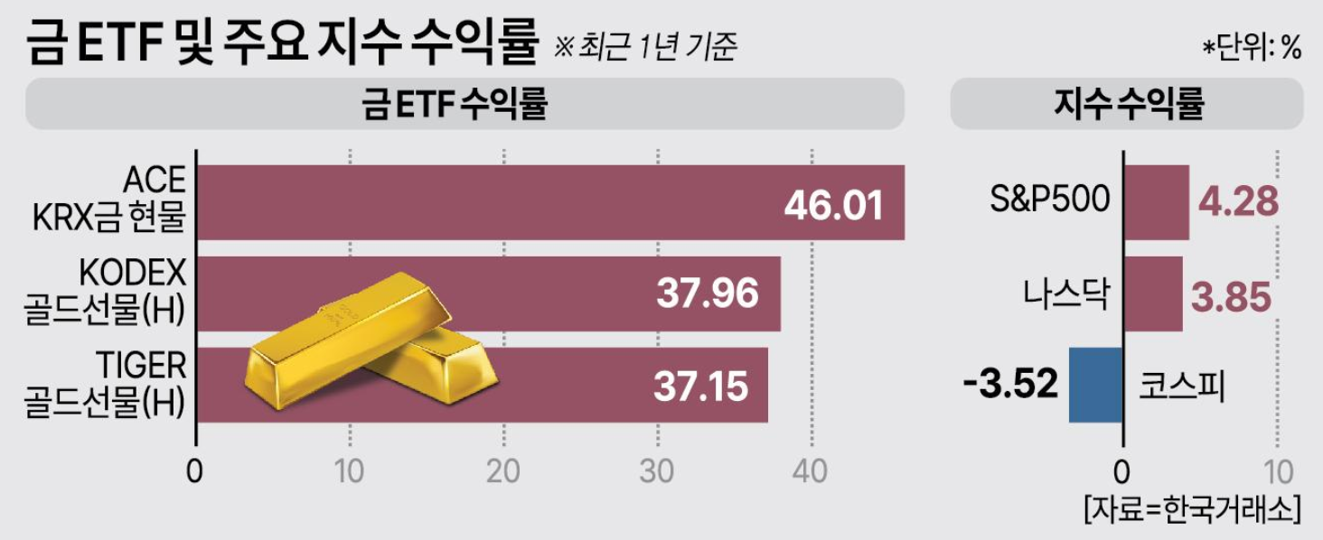 요즘 금 ETF 인기가 많다. 가격도 꾸준히 오른다.