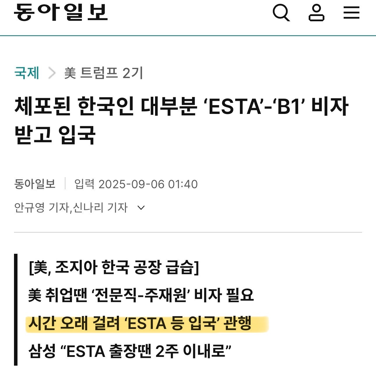 (미 언론에서도 esta 언급)