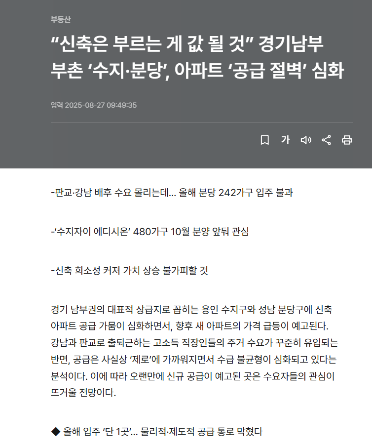 - 서울은 포기. 단, 대신 수도권 외곽 역세권 소형 아파트(구축), 신분당선·GTX 라인 근처 노려라.