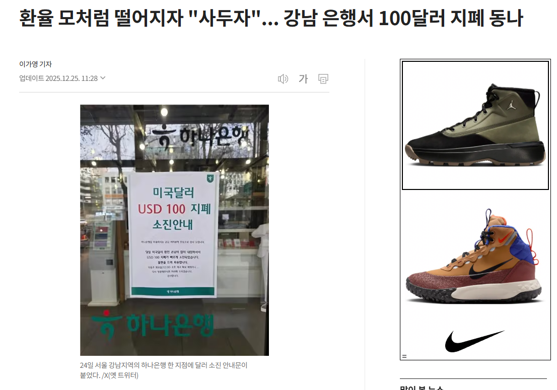 크리스마스 이브때 무려 원화는 2% 이상 절상(환율 급락)함