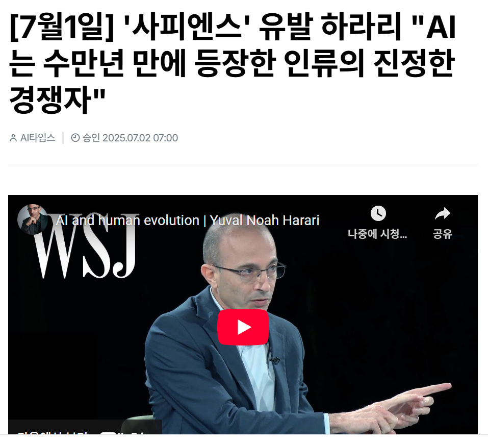 - 하라리는 “AI·미래·힘의 구조”를 말하지만, 결론은 늘 비슷--> "저항 말고, 구조 안에서 순응하라."