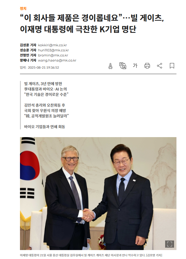 - 2025년 빌 게이츠의 한국·일본 동시 방문은 단순 자선 행보 아님